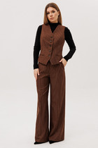 Предлагаем Вам супермодный джинсовый костюм в стиле 70-х — это стильный выбор для современной девушки или женщины. Джинсовый костюм двойка состоит из брюк-клеш и жакета-куртки средней длины на пуговицах, что делает его универсальным выбором. Два накладных нагрудных кармана с клапанами на пуговицах, два боковых кармана в рельефе и 2 внутренних кармана в жакете и пять в брюках добавляют ему функциональности, позволяя всегда иметь под рукой необходимые мелочи. Этот стильный весенний, летний, осенний брючный костюм создан из 100% хлопка, что делает его комфортным при любой температуре и очень приятным к телу. За счет плотной джинсовой ткани, костюм сохраняет свой первоначальный вид на долгое время. Модель с джинсами выполнена в духе классики, но при этом остается актуальной и трендовой на все времена. Возможность носить элементы раздельно — это важное преимущество. Джинсы клеш с высокой посадкой и широкими расклешёнными брючинами от колена. Низ брючин с широким отворотом и контрастной строчкой. Пояс со сшевками, застегивается на петлю и металлическую пуговицу. Вертикальные швы на брючинах визуально удлиняют силуэт. Мягкая эластичная резинка в поясе брюк обеспечивает комфортную посадку без стеснения движений, адаптируется к особенностям фигуры и не создаёт давления на талию, позволяя носить костюм целый день с лёгкостью. Джинсы с завышенной талией станут универсальным элементом гардероба как на каждый день, так и на праздничное мероприятие. Куртка-жакет легко комбинируется с другими элементами гардероба, сохраняя при этом классический образ. Если добавить парочку модных аксессуаров, то костюм легко трансформируется в наряд для вечеринки, дня рождения или другого значимого торжества. Не упустите возможность сделать заказ костюма прямо сейчас и приковывать к себе все взгляды окружающих уже сегодня!