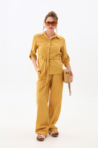 Юбка расширена к низу, на подкладке, верхний срез обработан поясом с расположением резинки по центру переднего и заднего полотна. Юбка длиной «миди».