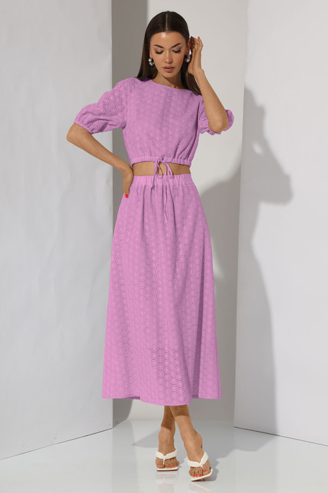 Комплект женский, состоит из топа и юбки. Выполнен из хлопковой плательной ткани.