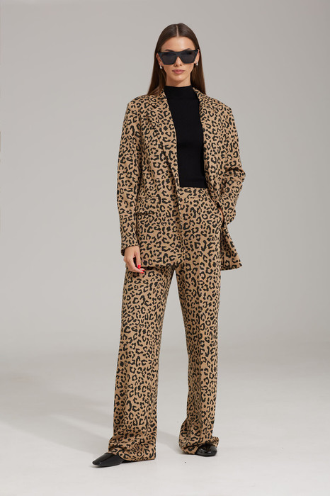 Комплект женский, состоящий из жакета и брюк. Выполнен из трикотажного полотна, дизайн леопард.