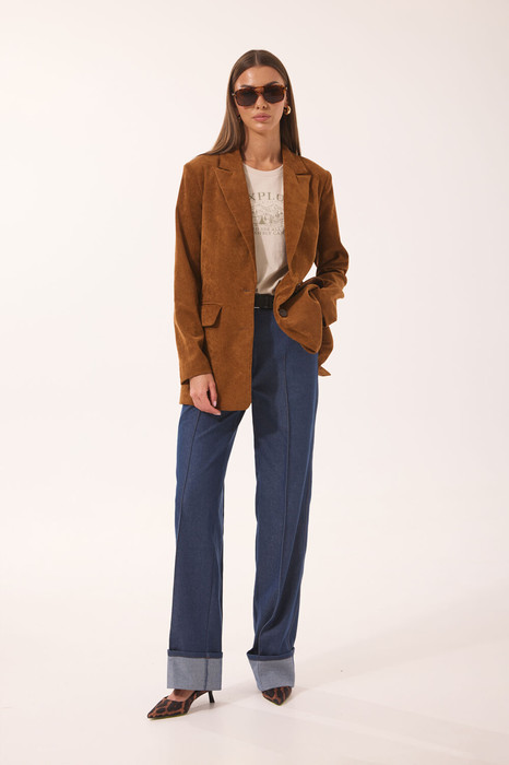 Комплект женский, состоит из штруксового жакета (на подкладке) и джинсовых брюк.