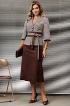 Комплект женский, состоящий из жакета на подкладке, брюк и топа из трикотажного полотна.