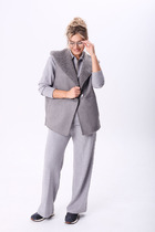 Костюм Magia mody 2619 серо-бежевый в бирюзовую полоску