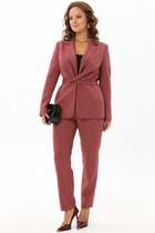 Длина жакета по спинке около 70 см в размерах 40-46 и около 73 см в размерах 48-52, длина рукавов около 62 см. Длина брюк по боковому шву с поясом около 112,5 в размерах 40-46 и около 114 см в размерах 48-52, длина по внутреннему шву около 80 см.