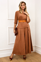 Длина жакета по спинке около 66 см в размерах 40-46 и около 69 см в размерах 48-52, длина рукавов около 61 см. Длина брюк по боковому шву с поясом около 97 в размерах 40-46 и около 98,5 см в размерах 48-52, длина по внутреннему шву около 70 см.