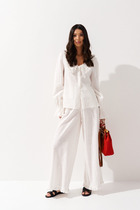 Длина жакета по спинке около 69 см в размерах 40-46 и около 72 см в размерах 48-52, длина рукавов около 62 см. Длина юбки по боковому шву с поясом около 46 см в размерах 40-46 и около 49 см в размерах 48-52 см.