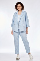 Длина жакета по спинке около 70 см в размерах 40-46 и около 72 см в размерах 48-52, длина рукава около 62 см. Длина юбки по боковому шву с поясом около 61 см в размерах 40-52 см