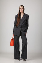 Костюм-двойка из свободного жакета и юбки «карандаш» с высоким разрезом.