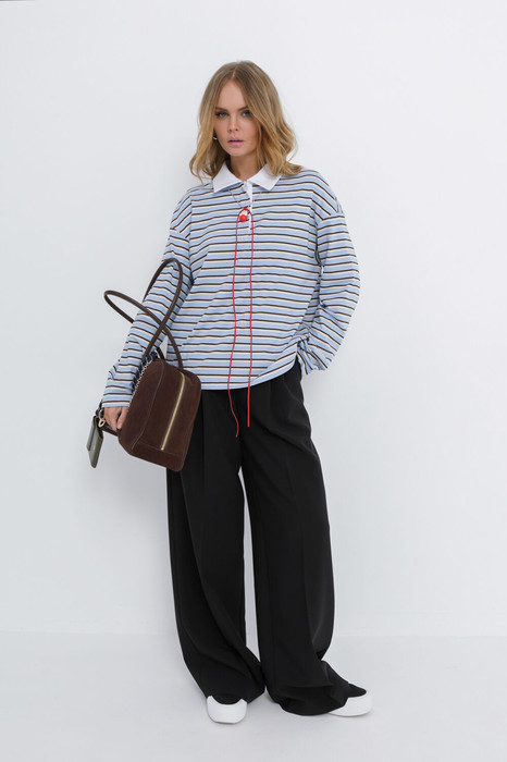 Комплект-двойка из свободного трикотажного поло в полоску и текстильных брюк-палаццо.