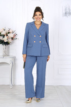 Комплект 2-предметный, состоящий из жакета и платья. Укороченный жакет полуприлегающего силуэта с центральной застежкой на петли и пуговицы. Воротник пиджачного типа с отложными лацканами. Перед жакета с накладными клапанами с пуговицами. Рукава втачные двухшовные. Спинка с талиевыми вытачками. Изделие на подкладке. Платье прилегающего силуэта в длине мини, с отрезным лифом и вытачками. Нижняя часть с вертикальным швом переходящим в разрез. Спинка отрезная с вытачками, с застежкой в среднем шве на потайную тесьму-молнию. Платье обработано хлопковой подкладкой.