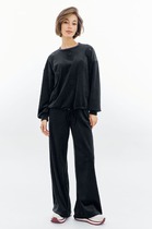 Женский комплект, состоящий из рубашки и брюк, выполнен из струящейся ткани с благородным матовым блеском. Рубашка современного прямого силуэта с центральной застежкой на петли и пуговицы. Горловина с рубашечным воротником на притачной стойке. Рукава со спущенной линией втачивания плеча с притачной манжетой. Брюки прямого силуэта с боковыми наклонными карманами. Пояс притачной на резинке, для регуляции размера. По манжете рубашки и в боковом шве брюк обработан кант.
