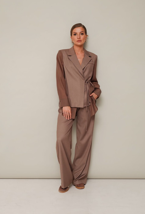 Элегантный 2-предметный комплект, состоящий из жакета и брюк, выполненный из костюмной и вискозной блузочной ткани.