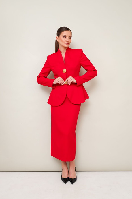 Стильный 2-х предметный комплект, состоящий из жакета и юбки, выполненный из костюмной ткани.