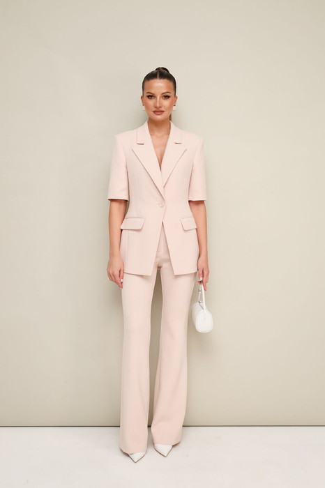 тильный 2-х предметный комплект, состоящий из жакета и брюк, выполненный из костюмной ткани.