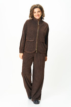 Двубортный жакет из костюмной ткани на подкладке. Воротник-с отложными лацканами пиджачного типа, рукава – двухшовные. По переду - прорезные карманы с клапанами. Застегивается на 2 пуговицы и одну потайную.