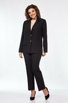 Длина брюк по боковому шву с поясом 107 см. Длина жакета по спинке 65 см. Длина рукава от горловины 51 см.