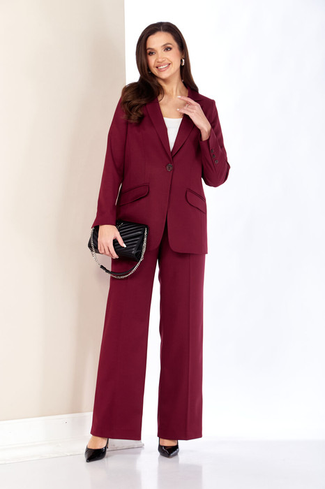 Костюм брючный деловой двойка из премиальной мягкой костюмной ткани. Классический офисный костюм с пиджаком является важным элементом гардероба. Удлиненный жакет и брюки можно носить как вместе, так и по отдельности. Жакет полуприлегающего силуэта с застежкой на пуговицу. Перед жакет с нагрудными вертикальными вытачками и рельефными швами, с прорезными карманами в рамку с клапаном. Спинка со средним швом и рельефными швами. Рукава двухшовные втачные со шлицей на пуговицы. Горловина оформлена воротником пиджачного типа. Брюки классического стиля, прямого силуэта, со стрелками в передней и задней части, на притачном поясе со шлевками и застежкой на молнию и пуговицу (высокая посадка). В передней и задней части расположены талиевые вытачки.