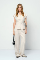 Брючный летний костюм больших размеров из льна. Будет идеальным летним вариантом для отдыха и просто на каждый день. Блузон свободного кроя и свободные в посадке укороченный брюки, оверсайз комплект на лето для женщин плюс сайз и для полных девушек. Дышащая ткань из смесового лен идеально подойдет для жаркого лета. Брюки свободные в посадке с круговой резинкой по поясу, шнурок в поясе позволит дополнительно скорректировать посадку по высоте. Функциональные карманы. Низ брюк на фигурной обтачке придает интересность и легкость, ножку делает более утонченной.