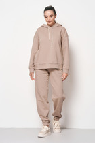Брюки прилегающие по бедрам и расширенные к низу. В боковых швах обработаны карманы. Застежка молния, по поясу на петлю и пуговицу. По поясу шлевки.