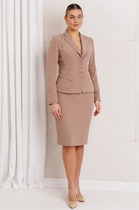 Жакет прямого силуэта с цельнокроенным рукавом летучая мышь, без застежки. По горловине отложной воротник на стойке. Спинка со сборкой из-под кокетки. В боковых швах обработаны разрезы. По низу рукава отложная манжета.
