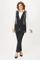 Комплект женский, 2х предметный, состоящий из рубашки и брюк. Рубашка прямого силуэта с длинным рукавом. Рукав двухшовный, со спущенной линией плеча, по низу на манжете. Застежка манжеты на кнопку. Горловина оформлена рубашечным воротником. Застежка центральная на кнопки. Перед задекорирован вышивкой с паетками. По спинке кокетка с отделочной нашивкой. Низ рубашки разноуровневый, по спинке длиннее. По бокам разрезы. Брюки прямые, с накладными карманами спереди. Пояс притачной с резинкой по кругу.