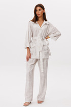 Стильный комплект-тройка, состоящий из жакета, брюк и блузы, отлично подойдет как для работы в офисе, так и для свободного времени. Простой лаконичный крой, сдержанность и элегантность - все, что нужно для безупречного образа.