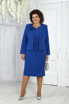 Костюм, состоящий из шорт с прорезными карманами в боковых швах и майки на бретельках с отрезным лифом. На майке с левой стороны внизу расположена печатьТкань: кулирка