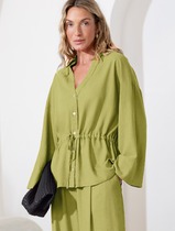 Шорты -средней длины, расширенные книзу, с эластичной тесьмой по талии.