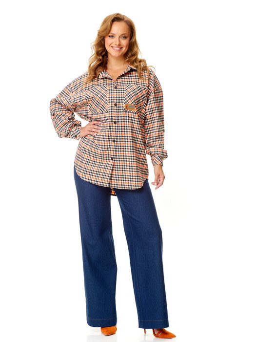 Брюки прямого силуэта с центральной застёжкой на молнию и петлю-пуговицу.