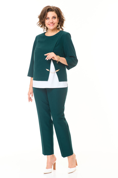 Брюки зауженные к низу, с центральной застёжкой на молнию и петлю-пуговицу.