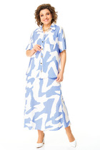 Блуза свободного покроя с естественной линией плеча. Перед с отрезной планкой, нагрудной вытачкой и накладным карманом с левой стороны. Рукав втачной одношовный до линии локтя. Воротник блузочный на отрезной стойке. Застежка на петли-пуговицы.