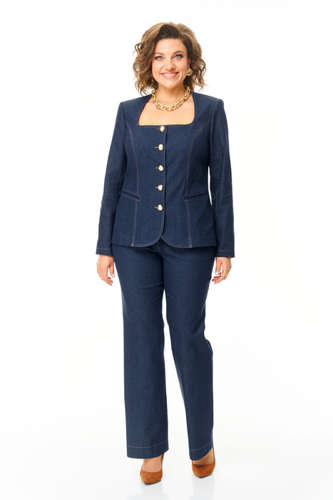 Жакет полуприлегающего силуэта с естественной линией плеча. Спинка со средним швом и рельефами из плеча. Перед с рельефами из плеча и прорезными карманами. Застежка центрально-бортовая на петлю-пуговицу. Горловина углубленная авторской формы. Рукав втачной длинный. В локтевом шве рукава обработана отлетная шлица с отделочными пуговицами.