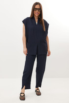 Юбка на подкладке зауженного силуэта типа "карандаш". В среднем шве заднего полотнища застежка на потайную тесьму-молнию и шлица. Пояс притачной с резинкой в боковых швах.