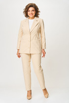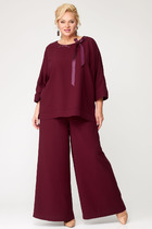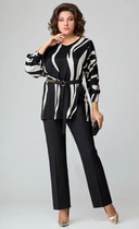 Комплект женский, состоящий из блузы и юбки. Блуза свободного силуэта, почти бесформенная, легко ниспадает, подчёркивая лёгкость и непринуждённость. Фактурный трикотаж, имеет небольшую прозрачность. Блуза укороченная, с округлой формой горловины. Рукав по форме летучая-мышь. Спинка без особенностей. Юбка трапециевидного силуэта с притачной кокеткой по верху юбки. Застёжка на декоративную тесьму молнию в среднем шве спинки юбки. Главной особенностью юбки является конструктивные подрезы выполненные горизонтально и вертикально с отстрочкой контрастного цвета. Длина блузы по спинке 66 см (р 50-54), 67 см (р 56-60). Длина юбки 82 см.