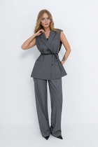Костюм из свитшота и брюк. Свитшот с полукруглой горловиной, удлиненными манжетами, вставкой на полочке и накладными карманами. Брюки прямого кроя на манжетах с карманами. Ростовка: 164-168. Состав: Велюр люрекс (хлопок 80%, полиэстер 20%)