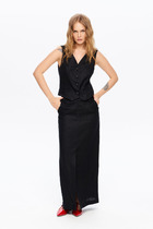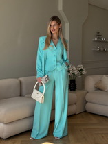 Костюм женский из плотного гладкокрашеного трикотажного полотна "кулирка", состоящий из футболки и шорт. Футболка - свободного покроя, с удлиненными плечевым и швами, короткими втачными рукавами и горловиной овальной формы, обработанной втачной планкой. В нижней части переда слева настрочен декоративный элемент прямоугольной формы. По горловине проложена отделочная строчка. Шорты - классического покроя, на притачном поясе с эластичной тесьмой внутри и карманами в боковых швах. Для регулирования степени прилегания шорт по талии в пояс вставлен шнурок, продетый через два отверстия в соединительных швах в центре пояса.