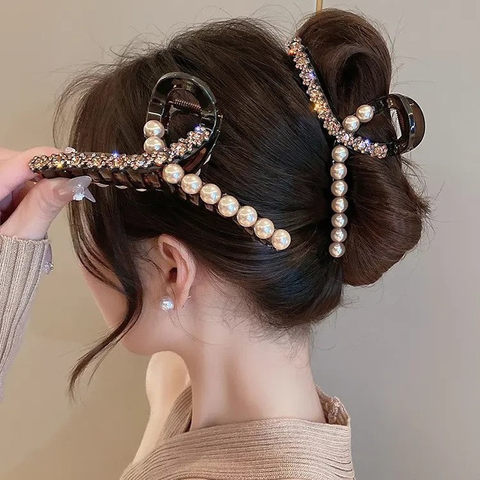 Совместные покупки Уфа Косметика и парфюмерия Прочий макияж — Краб для волос петелька со Стразами и Бусинами, 13 см.