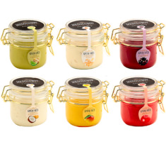 3 баночки с разными вкусами.