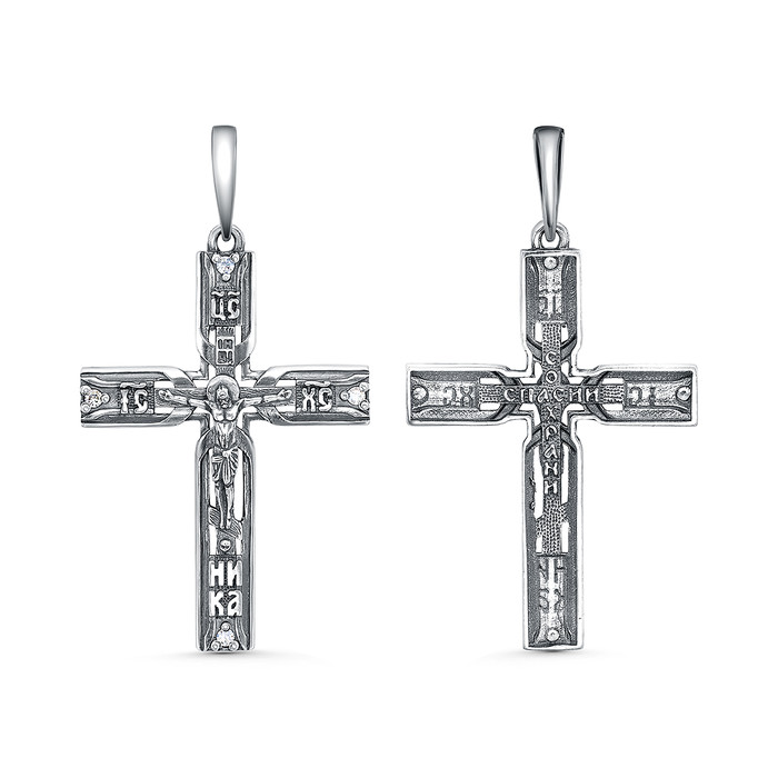 Совместные покупки Уфа Ювелирные украшения и бижутерия Подвески — Крест из чернёного серебра с фианитами - 4,4 см 925 пробы Кр-151ч