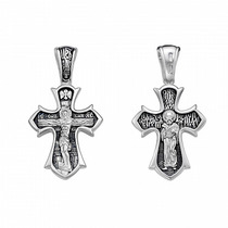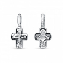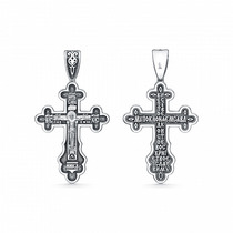 Крест из чернёного серебра с фианитами - Лики святых 5,5 см