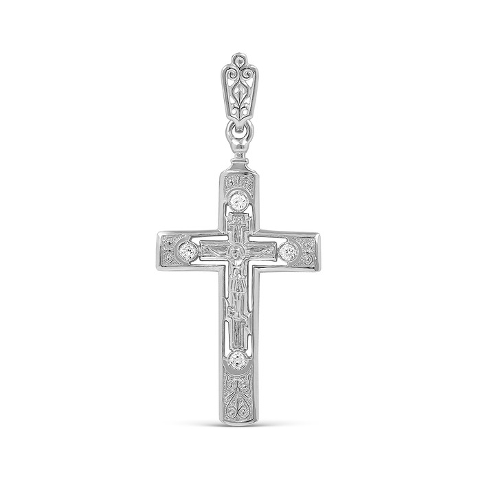 Крест из родированного серебра с фианитами 925 пробы К3-079р