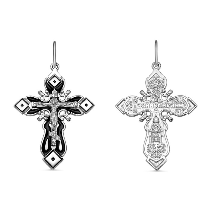 Совместные покупки Уфа Ювелирные украшения и бижутерия Подвески — Крест из серебра с эмалью родированный - 4,3 см 925 пробы Кр-728 Э р
