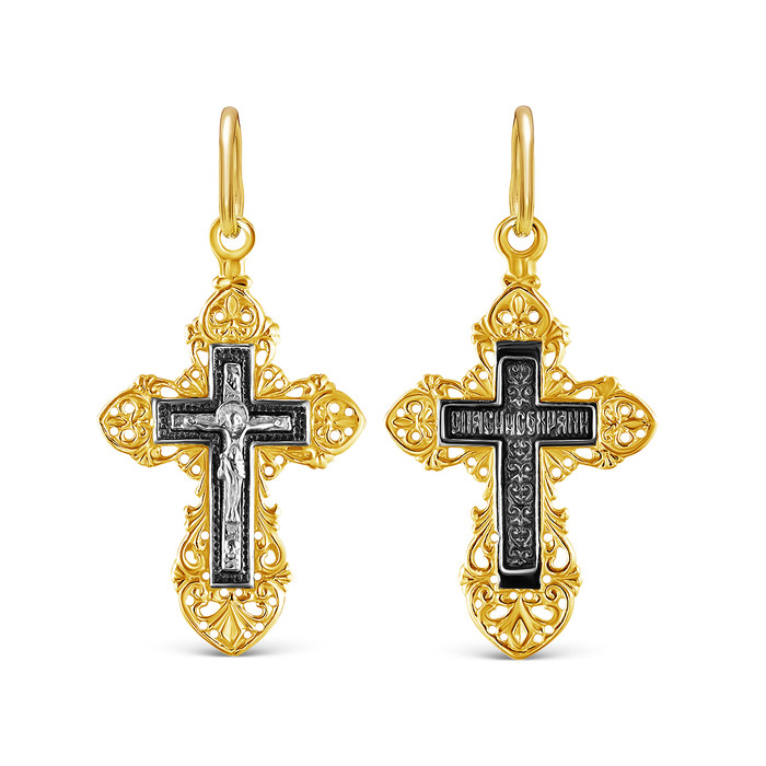 Совместные покупки Уфа Ювелирные украшения и бижутерия Подвески — Крест из золочёного серебра с чернением - 3,2 см 925 пробы К3-255чз