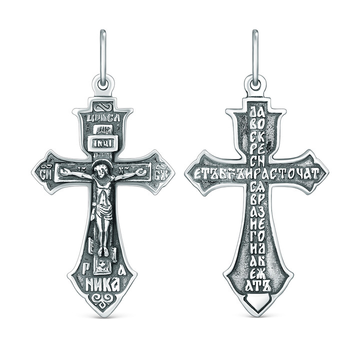 Совместные покупки Уфа Ювелирные украшения и бижутерия Подвески — Крест православный из чернёного серебра - Да воскреснет Бог, 4,7 см К3-412ч
