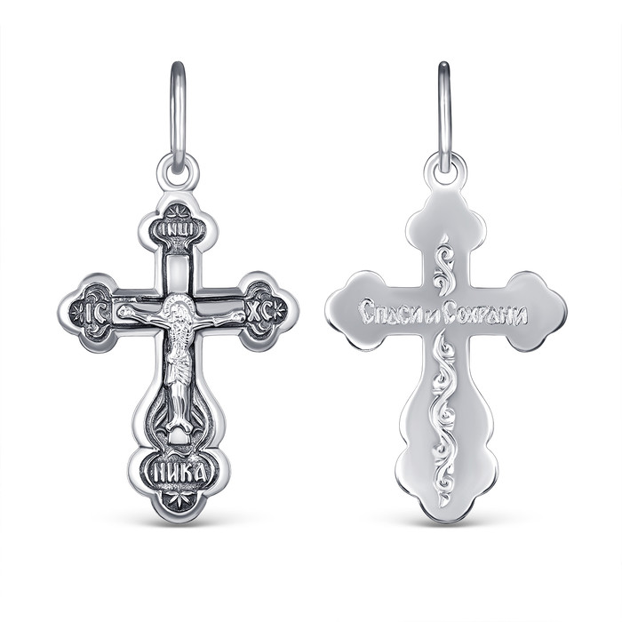 Совместные покупки Уфа Ювелирные украшения и бижутерия Подвески — Крест православный из чернёного серебра - Спаси и сохрани 3,1 см 925 пробы 1-107