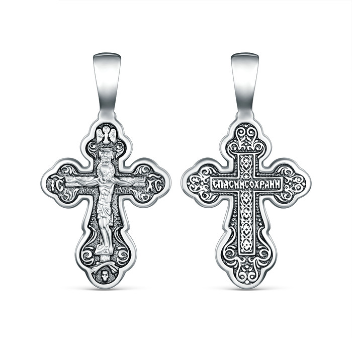 Совместные покупки Уфа Ювелирные украшения и бижутерия Подвески — Крест православный из чернёного серебра - Спаси и сохрани 3,2 см 925 пробы 3-553