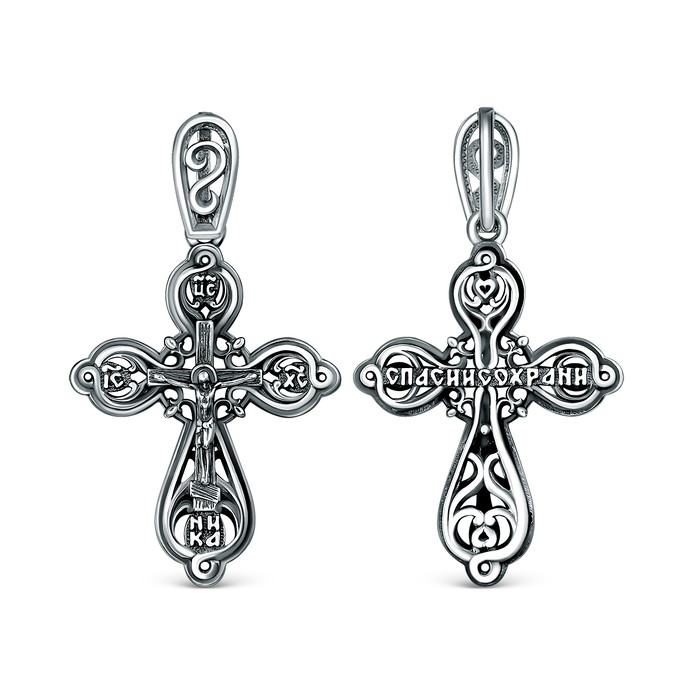 Совместные покупки Уфа Ювелирные украшения и бижутерия Подвески — Крест православный из чернёного серебра - Спаси и сохрани 3,2 см ПР-013ч