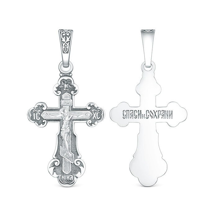 Крест православный из чернёного серебра - Спаси и сохрани, 3,6 см 00-0026-2