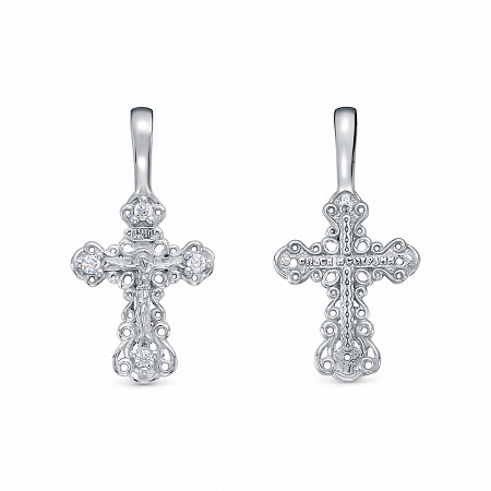 Крест с фианитом родированный серебро 925*