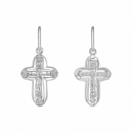Крест с фианитом родированный серебро 925*